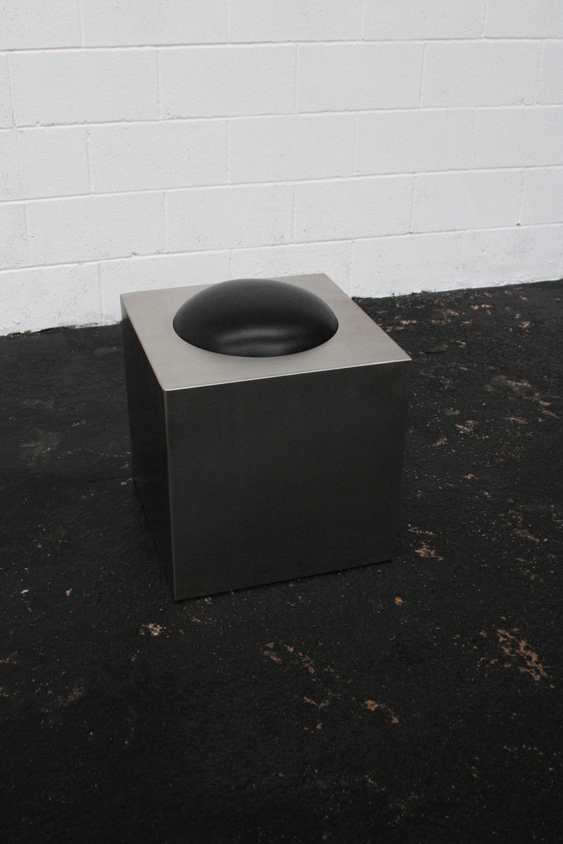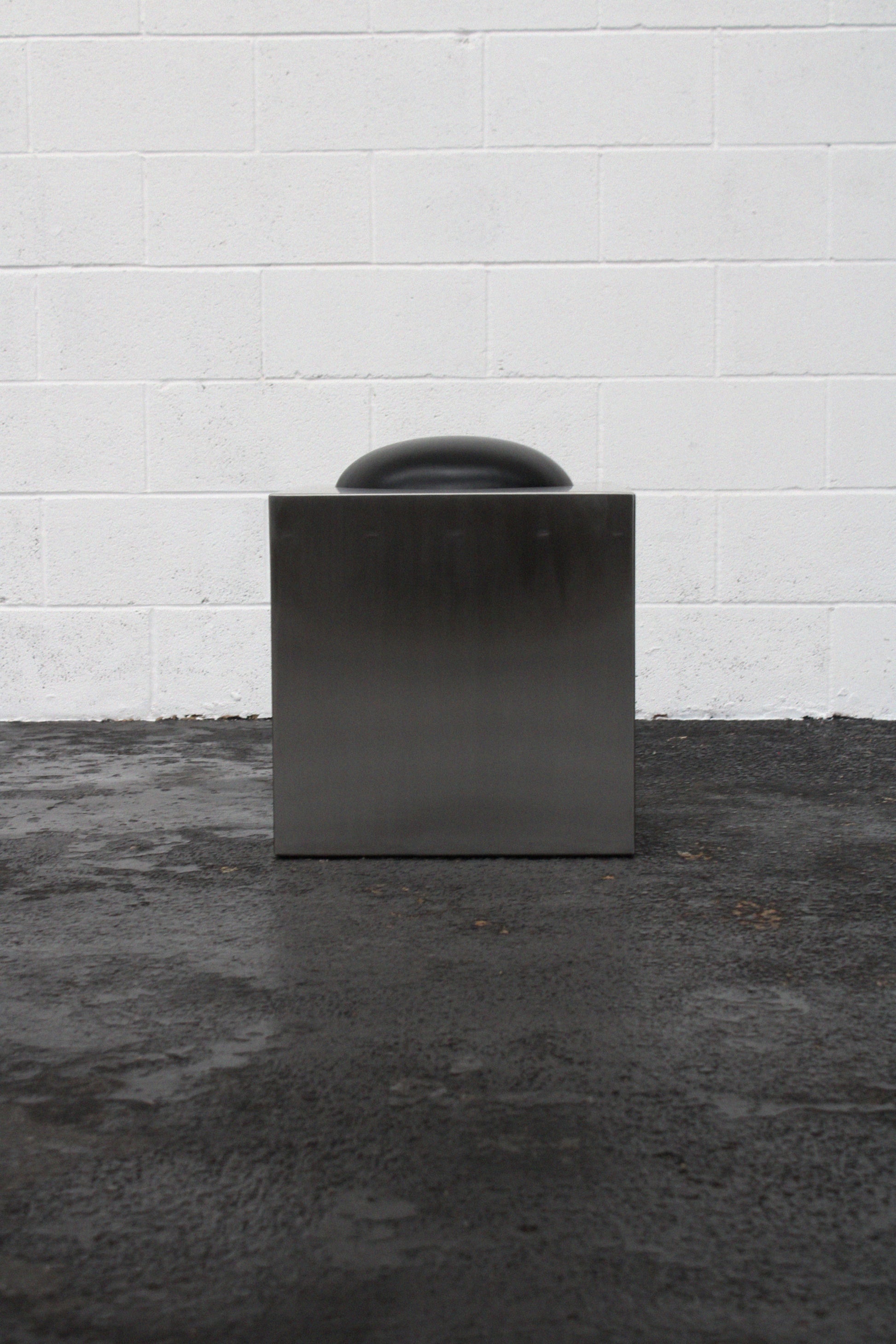 Fabricated in 2mm stainless steel in a satin finish, the stool measures 500mm squared and features a perfectly domed seat cushion measuring 350mm diameter.